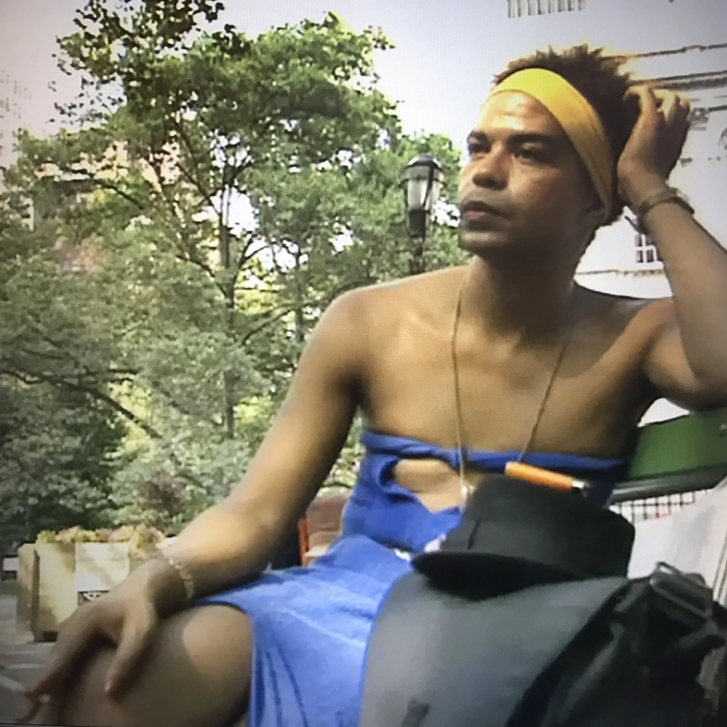 In Tongues Untied Jessie's interview is edited and Jesse's voice is silenced. The scene of Jessie being harassed is omitted. Instead we see edited footage of Jessie sitting on the bench overlayed to a Bessie Smith song about unrequited love. Why was Jessie's words, omitted? Why was the moment when Jessie defended themselves and resisted public harrassment edited out? I suspect that it exceeded the narrative arch of the film, specifically the section of the film in which it used, wherein Marlon bemoans unrequited attraction for white men in San Francisco and questions his desire to be seen and loved by white men. So often Black femme presenting, gender expansive people are erased, silenced, ignored. Expression of rage and resistance quelled. Jessie’s likeness used to reinforce narratives of victimization and unrequited love.